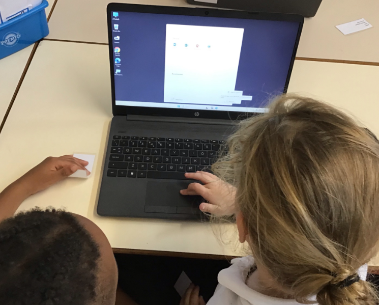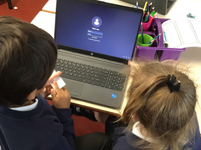 In computing, we had our first go at logging onto the laptops. It was a tricky task, and we looked at how to make capital letters, how to use the mouse pad (as touching the screen didn't work) and finding the letters we needed for our names. This is a skill that we will keep practising over the next few weeks!
