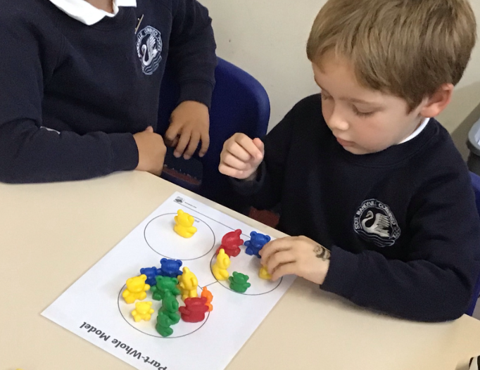 In Maths, we have been focussed on finding the missing part. We looked at using the part part whole model to do this and looked at how counting on from the part we know up to the whole is really helpful.