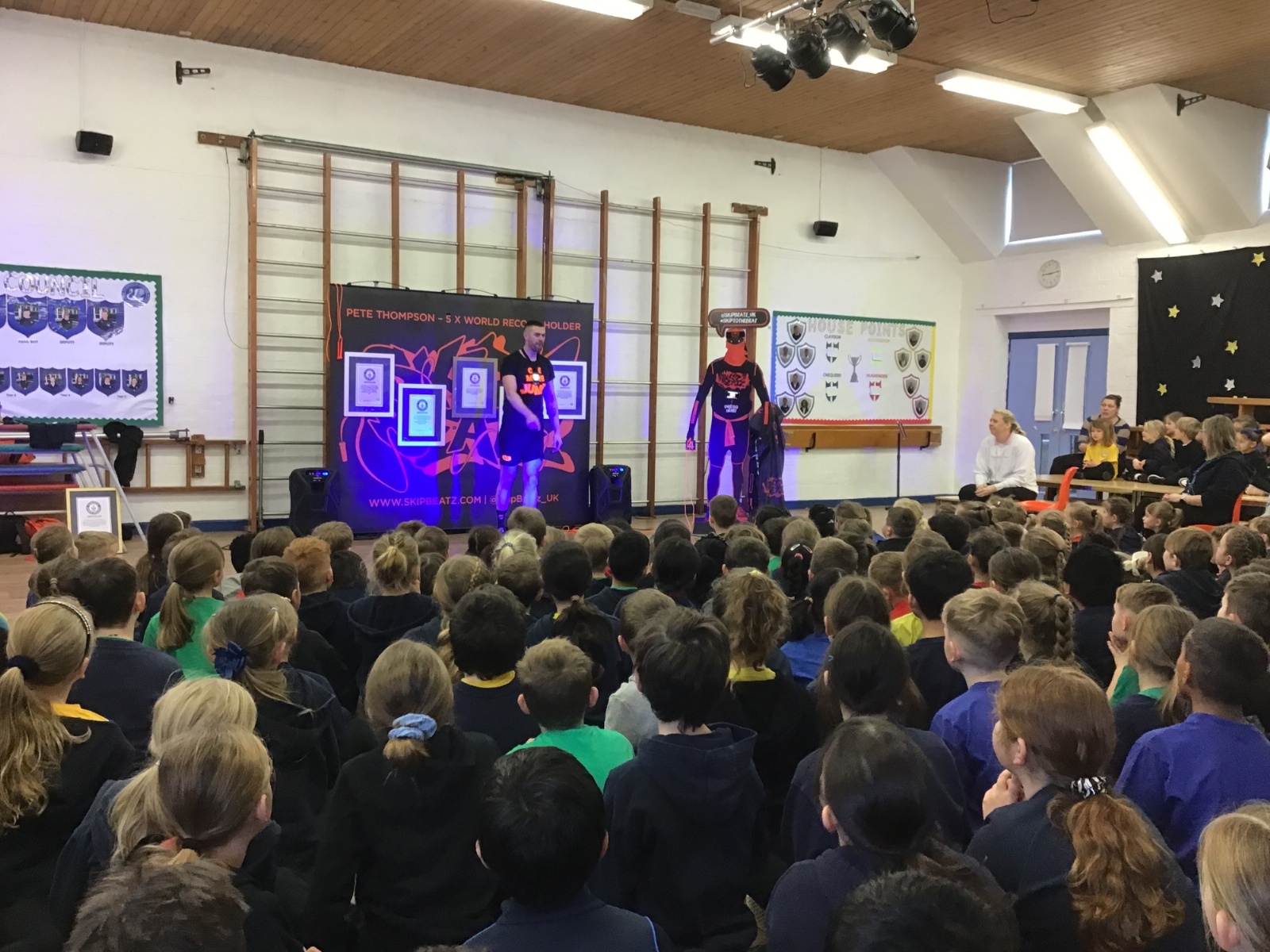 On Friday 2nd February we were joined by Pete Thompson – a Guinness world record holder in speed skipping! He gave an assembly to the school following by individual lessons with each class throughout the day. The children (and staff!) have had a fun day learning from him and will hopefully be bringing home a few new skills!