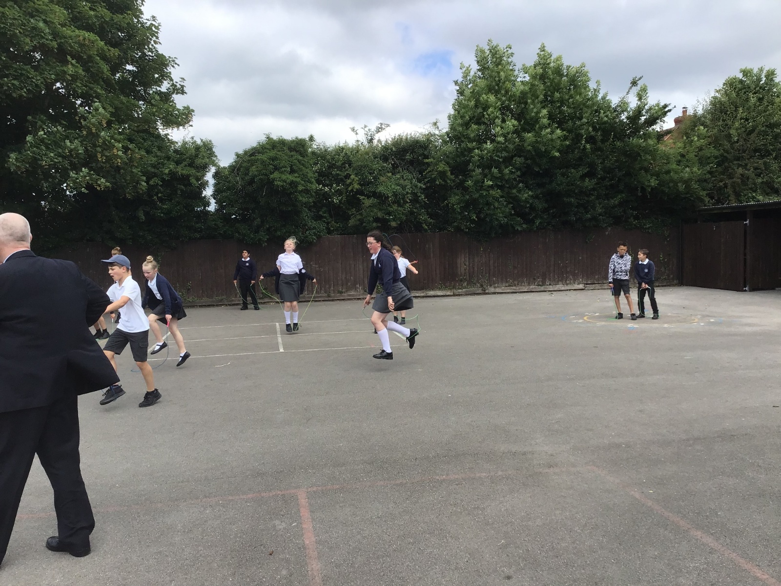 On Friday 24th June the whole school took part in a Skipping Challenge. The challenge set by the Guinness Book of Records was to see how many children we could have skipping for one full minute at the same time and took part at the same time as other schools all around the UK.