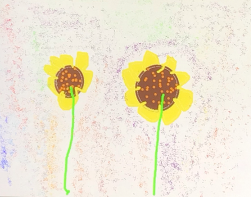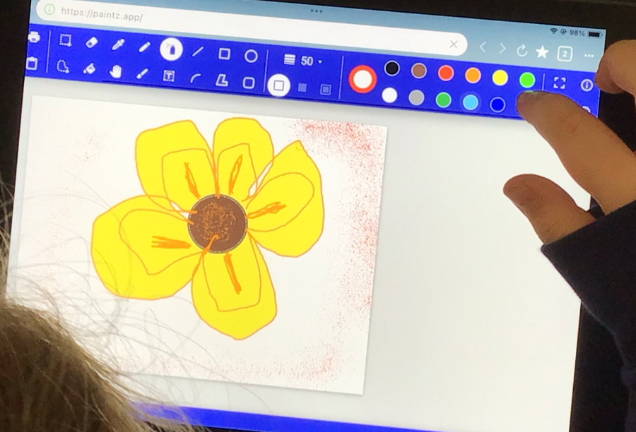 In computing, we looked at the different tools and skills that we have used and learnt over the last few weeks, to create paintings of sunflowers. Our task was to use the paint and iPad tools to create dots to create our image.