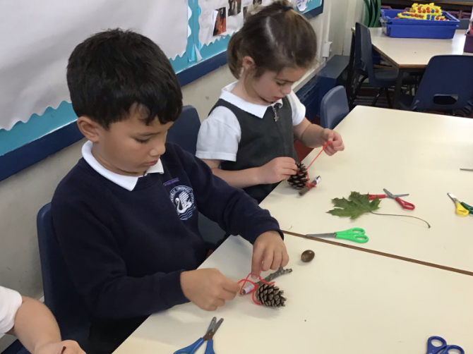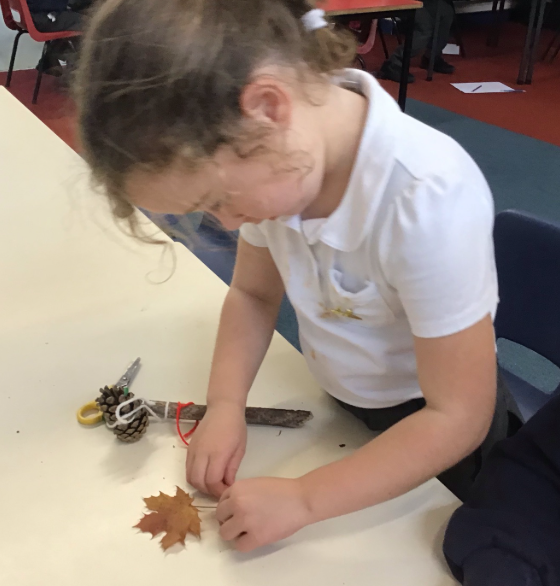 In RE, we used different natural materials to create a mobile that has been made from nature. We then made pledges about what we can do to help look after the world we live in, including looking after nature and making sure that rubbish goes in the bin.