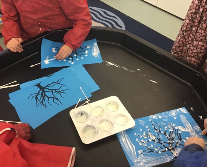 In science, we have been looking at the changes that arrive with winter. Last Friday we went on our winter walk, looking for the changes that we could see. We also thought back to the weather that we had had earlier in the week. This week we looked at different wintery images, talking about how we knew that they were wintery. Then we completed some winter artwork.