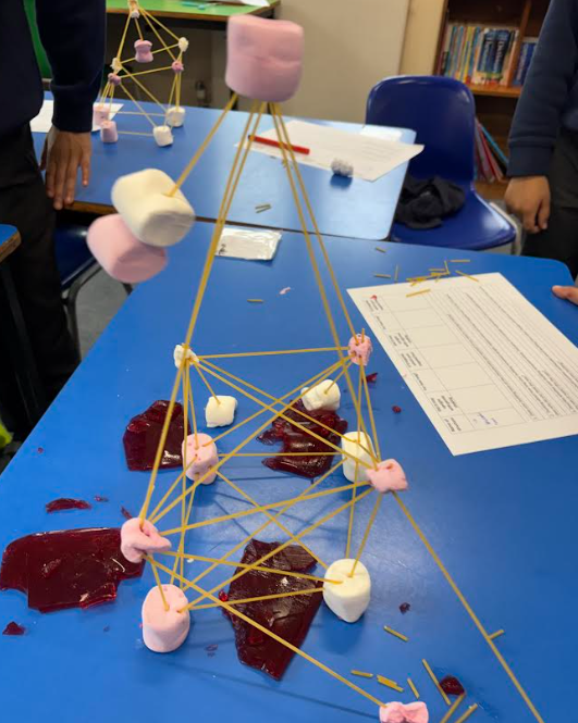 Year 4 have had a brilliantly creative week, building their prototype earthquake-proof buildings. Over the past few weeks, they have learnt how engineers use, base isolators, cross bracing, strong yet flexible metals and weights to counteract the effect of an earthquake on the building.  They utilised all of their knowledge to design and then build their structures this week using only spaghetti and marshmallows! When they came to test them, the children placed them on a bed of jelly to act as an unstable factor and shook tables first gently and then with more vigour to act as the earthquake force.  The children timed whether their structures could stay up for periods of 30 seconds and brilliantly - they did! What engineers we have developed in this class!