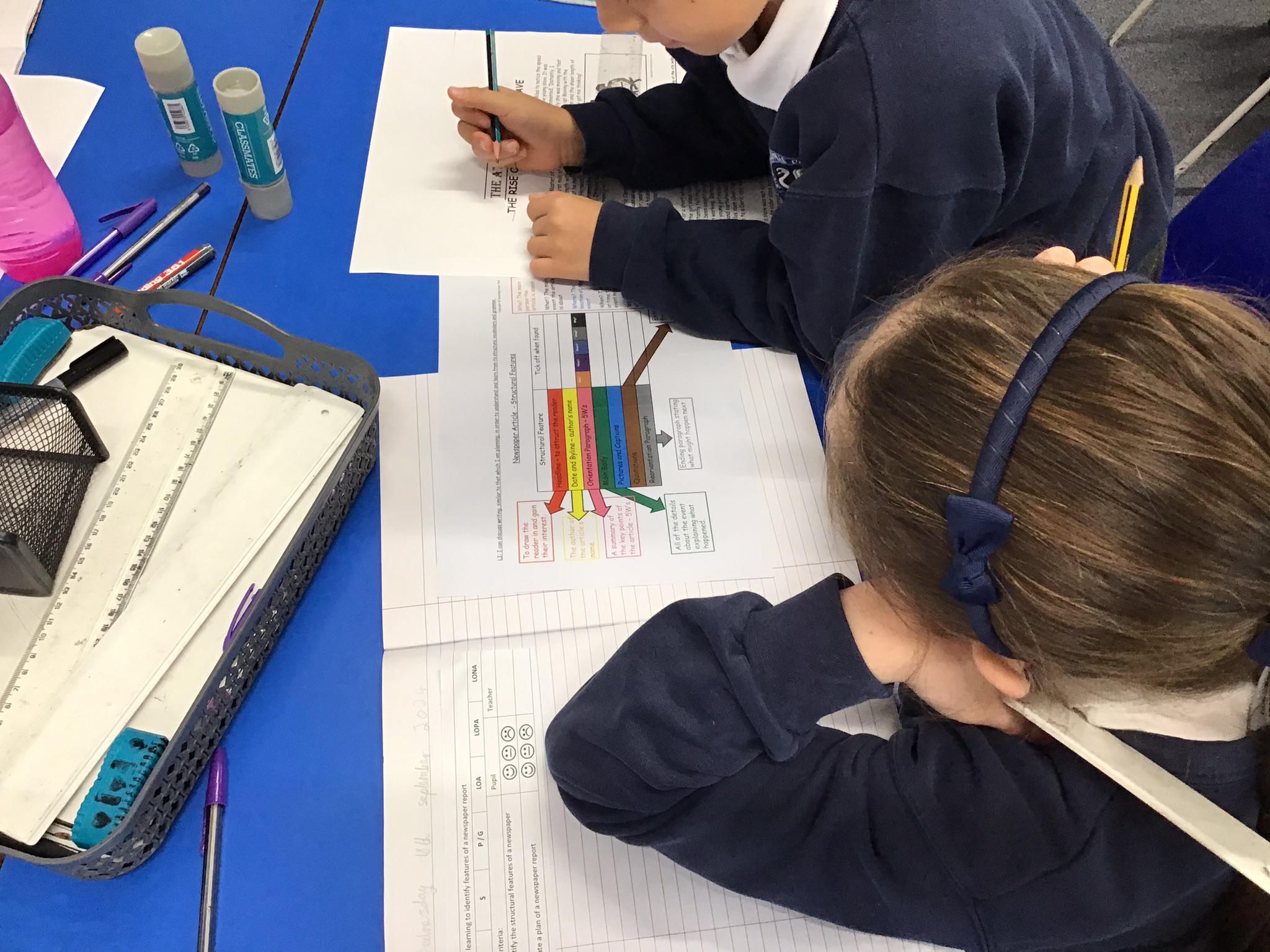 During our English lessons, we have completed our news reports and written them up using the layout of a newspaper. We have all been working really hard without handwriting. We are practising our joining and letter formation, keeping our writing on the line and ensuring our letters are consistent in size.