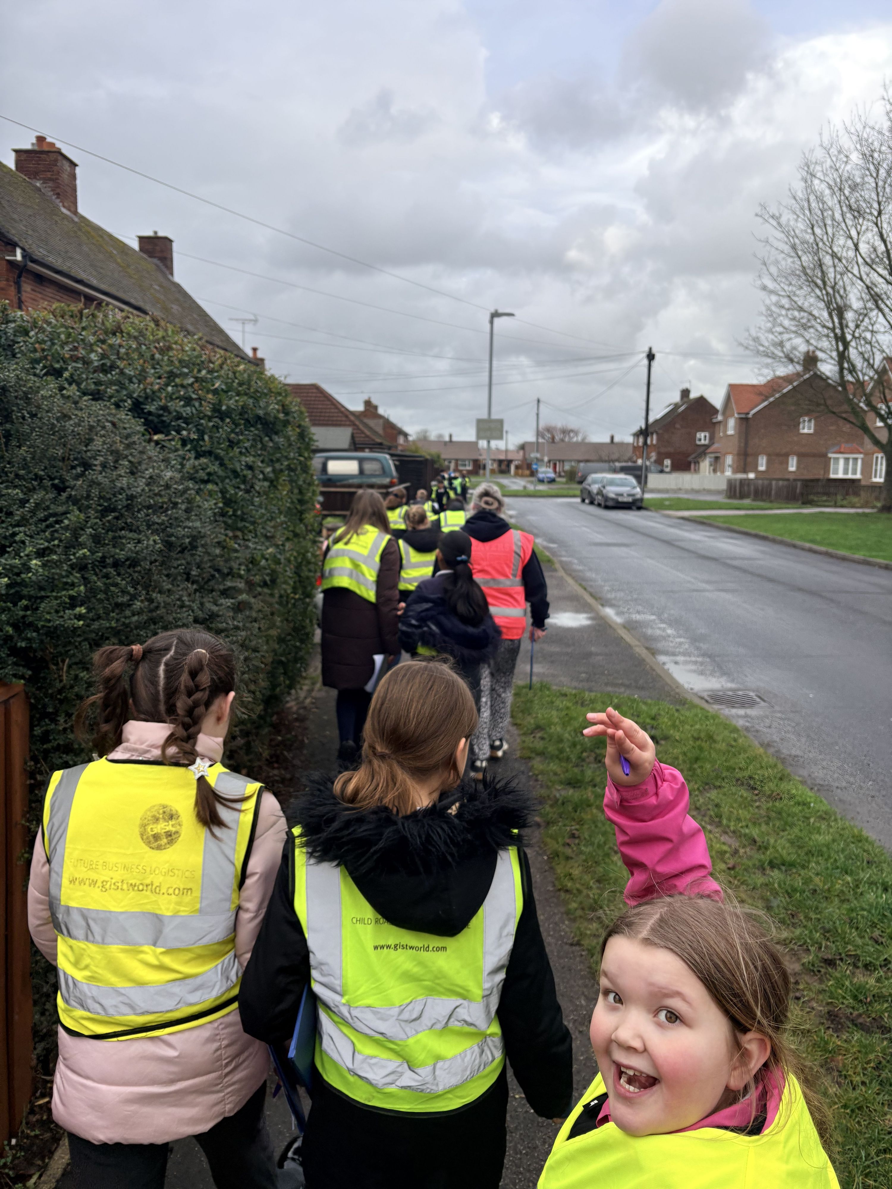 Today, the children are collecting data for their geographical question by walking around Stoke Mandeville looking at the different types (and quantities) of transport or exploring the types of buildings: whether they are residential, commercial, agricultural, related to transport or industry.
