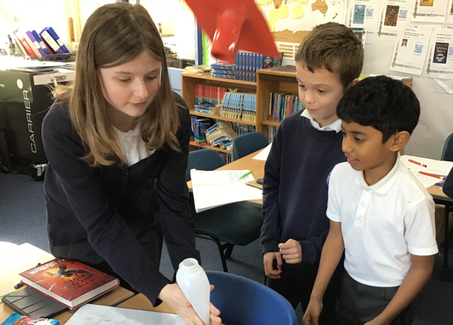 British Science Week has been an exciting opportunity to develop their scientific curiosity. On Monday, the children used a variety of materials to try to solve Henry's holey bucket problem. On Tuesday, year 5 decided on the best way to separate materials. They especially enjoyed separating iron filings from sand. They also took part in a live lesson from PSTT where they had to ask questions and test their rockets.  On Wednesday, the children created their own discus and thought about how they could make it fly further. On Thursday, Science Oxford came with an excellent workshop, revealing some of the science behind magic and looking at the absorbancy of nappies. In the afternoon, the children explored reversible and irreversible changes through making chocolates, cracking glowsticks and inflating balloons from a chemical reaction between bicarbonate of soda and vinegar. On Friday, we made observational drawings of things in nature, including a wasp's nest.