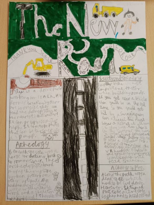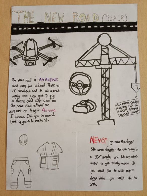 This week, we were extremely fortunate to be invited to the SEALR site so that children could learn about changes in their local area. This was a fantastic opportunity and we felt very fortunate to have been invited. The children have been busy making posters about what they learnt which we will be sharing soon. They were able to walk and see the new road and roundabout, they used a simulator and VR headsets to see how to use and be safe around the machinery used on site, they were shown how the drones are used to support the road building and were able to ask a number of questions. It was very interesting to hear about careers opportunities and understand all of the different essential roles needed to build a road.