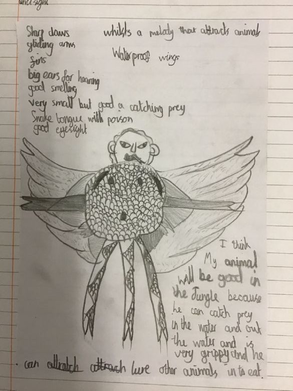 In year 6 this week, we have been very busy with our learning. In DT we are continuing with our 'make do and mend' Christmas stocking creations which we are looking forward to sharing. In science, we have been looking at how animals adapt to their environment. We have looked at the difference between natural selection and evolution as well as how characteristics are inherited. We researched different habitats and what the conditions were like in each environment. We then selected three animals from a chosen habitat to investigate what characteristics they had in order to adapt and survive in their environment. Finally, we discussed how animals may evolve in 10 million years' time, and we created our own evolved animals, taking into account what characteristics would make them the 'fittest' and best able to survive in their environment. These are some of the ideas we came up with: